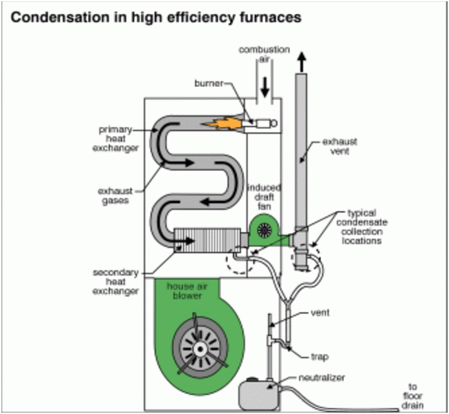 High-efficiency units that have a AFUE rating of 90 or above are designed to produce exhaust that comes in a cool liquid form. Typically, this condensation is systematically removed from your home through a drain in the floor.